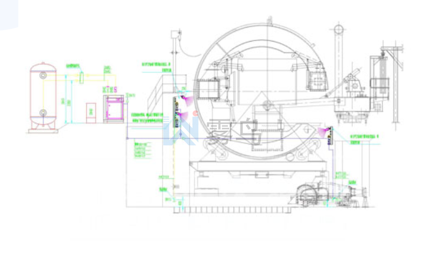 翻车机的微米级干雾抑尘系统由水箱、多级过滤恒压����� �������Ƴ������������ �������Ƴ����������� �������Ƴ������������ �������Ƴ�������供水站、空气压缩机、储气罐、微����� �������Ƴ������������ �������Ƴ����������� �������Ƴ������������ �������Ƴ�������米级干雾抑尘主机、干雾箱控制器����� �������Ƴ������������ �������Ƴ������������ �������Ƴ������������ �������Ƴ�������、喷雾箱、雾化管道、集中控制系����� �������Ƴ������������ �������Ƴ����������� �������Ƴ������������ �������Ƴ�������统、配电箱等组成。 在翻车机����� ������ �������Ƴ����������� �������Ƴ������������ �������Ƴ����������� �������Ƴ�������������Ƴ������倾翻侧上面安装5套ST����� �������Ƴ������������ �������Ƴ������������ �������Ƴ����������� �������Ƴ�������2-7-60干雾箱总成,1套STK-A干雾箱控制����� �������Ƴ����������� �������Ƴ����������� �������Ƴ������������ �������Ƴ�������器,1套STK-W干雾箱控制器,在倾翻侧����� �������Ƴ������������ �������Ƴ������������ �������Ƴ����������� �������Ƴ�������下面安装3套ST2-7-60干雾箱总成,����� �������Ƴ����������� �������Ƴ������������ �������Ƴ����������� �������Ƴ�������1套STK-A干雾箱控制器,1套STK-W干����� �������Ƴ����������� �������Ƴ������������ �������Ƴ������������ �������Ƴ�������雾箱控制器,在背翻侧设计安装6����� �������Ƴ������������ �������Ƴ������������ �������Ƴ����������� �������Ƴ�������套ST2-7-60干雾箱总����� �������Ƴ������������ �������Ƴ����������� �������Ƴ������������ �������Ƴ�������成和1套SKT-A干雾箱控制器、1套SKT-W����� �������Ƴ������������ �������Ƴ����������� �������Ƴ������������ �������Ƴ�������干雾箱控制器,干雾箱总成喷雾时����� �������Ƴ������������ �������Ƴ������������ �������Ƴ������������ �������Ƴ�������间30s,周期2min。
