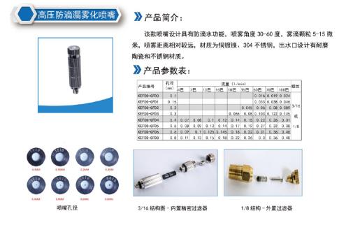 喷嘴选用:选用导流片式喷嘴����� �������Ƴ������������ �������Ƴ������������ �������Ƴ������������ �������Ƴ�������,内置精密过滤器,喷雾雾滴细小5-15um����� �������Ƴ������������ �������Ƴ����������� �������Ƴ������������ �������Ƴ�������,工作压力40-80公斤,流量����� �������Ƴ������������ �������Ƴ������������ �������Ƴ������������ �������Ƴ�������60ml/min